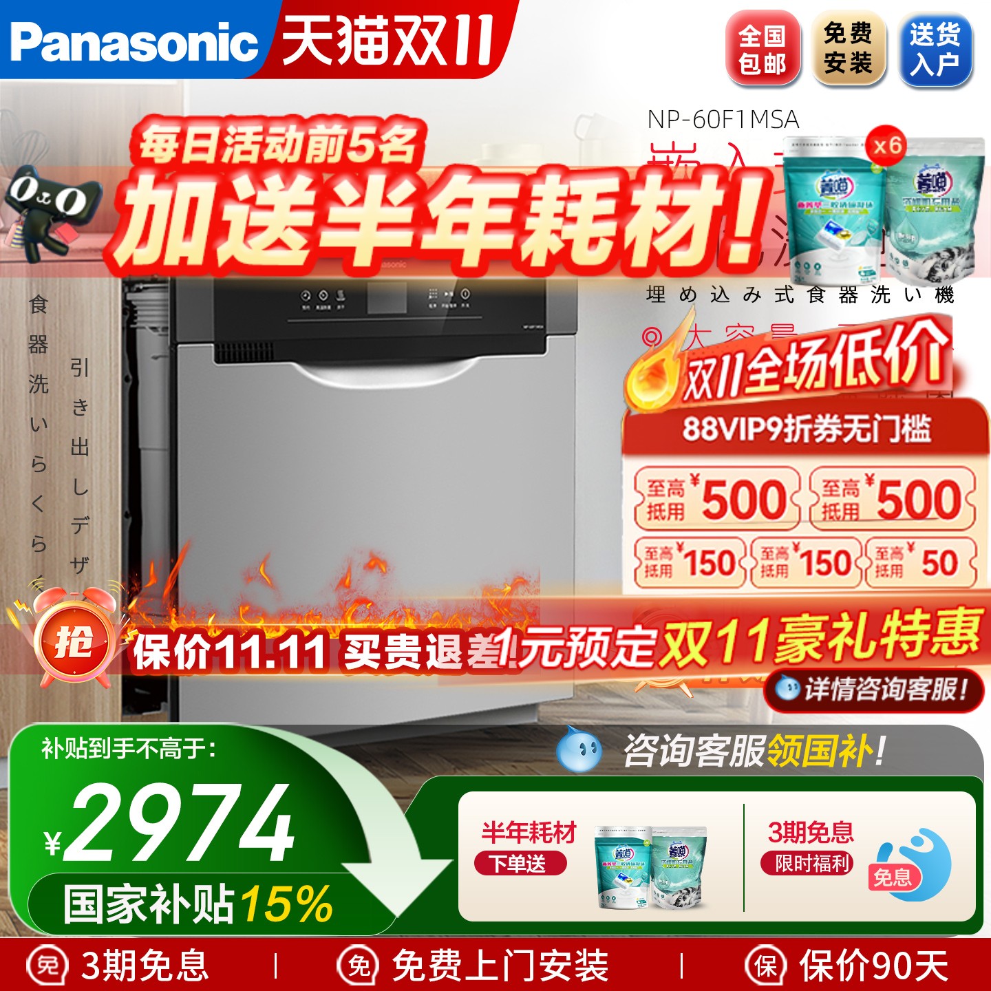 松下洗碗机嵌入式家用8套抽屉式全自动杀菌烘干刷碗机60F1MSA