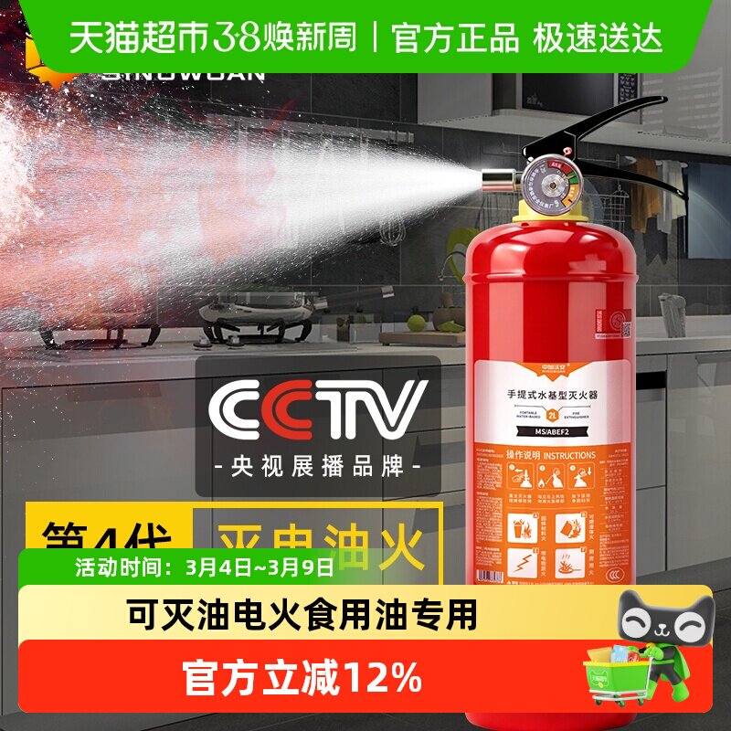 中加沃安车用家用水基灭火器消防器材2L第四代商铺用灭火器正品3C