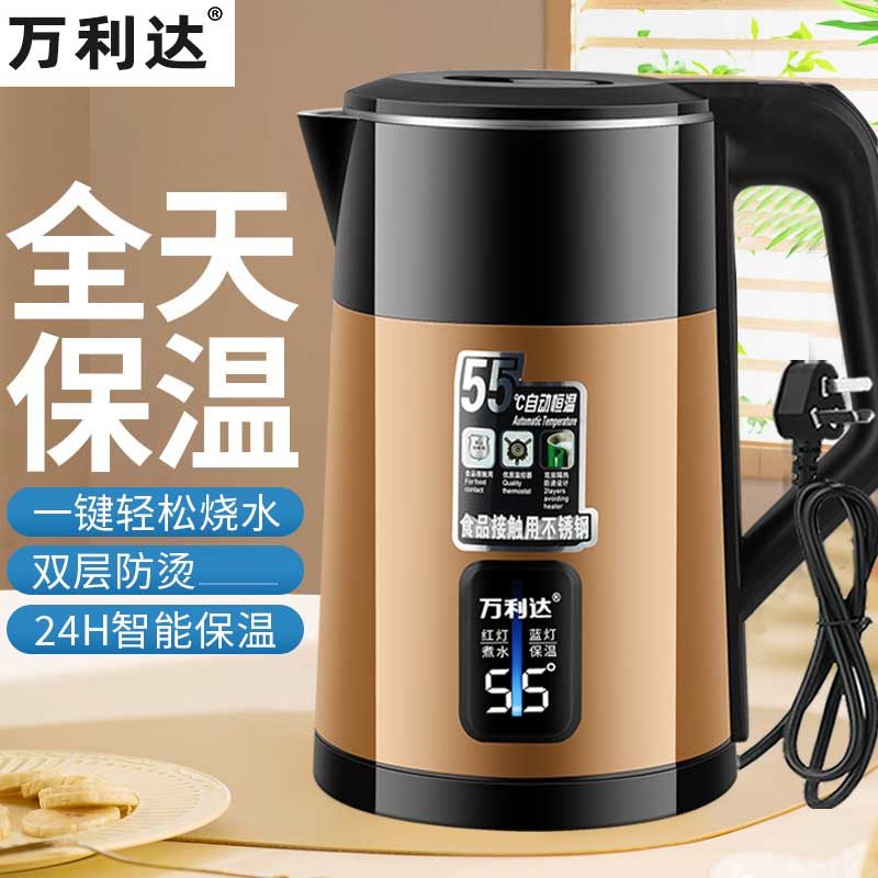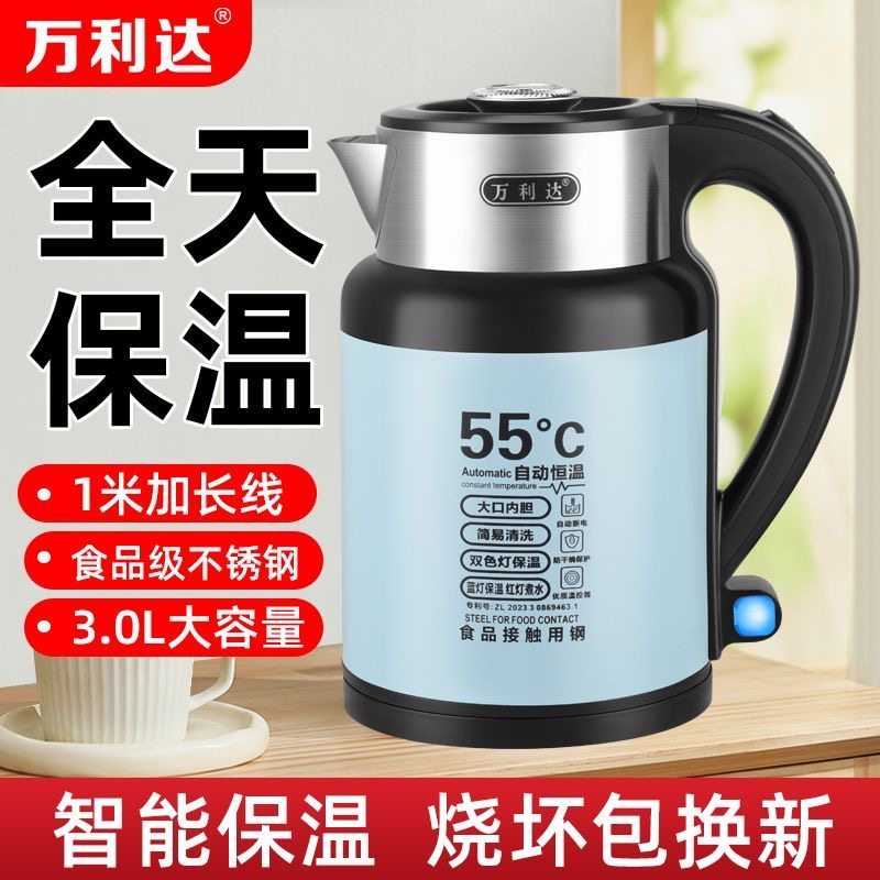 万利达家用电热水壶大容量智能保温自动断电烧水壶3L恒温不锈钢