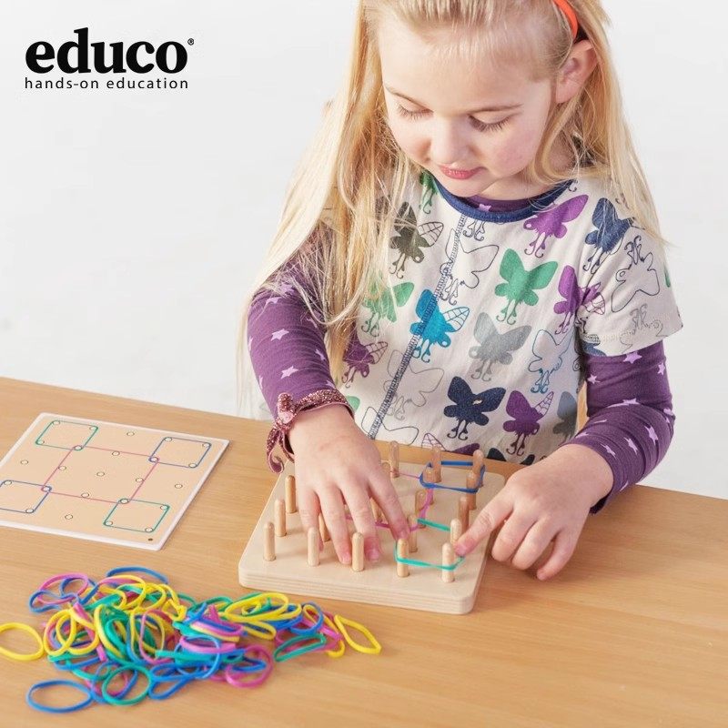 educo 弹力绳图形拼板小钉板空间感知精细动作训练幼儿早教玩具4+