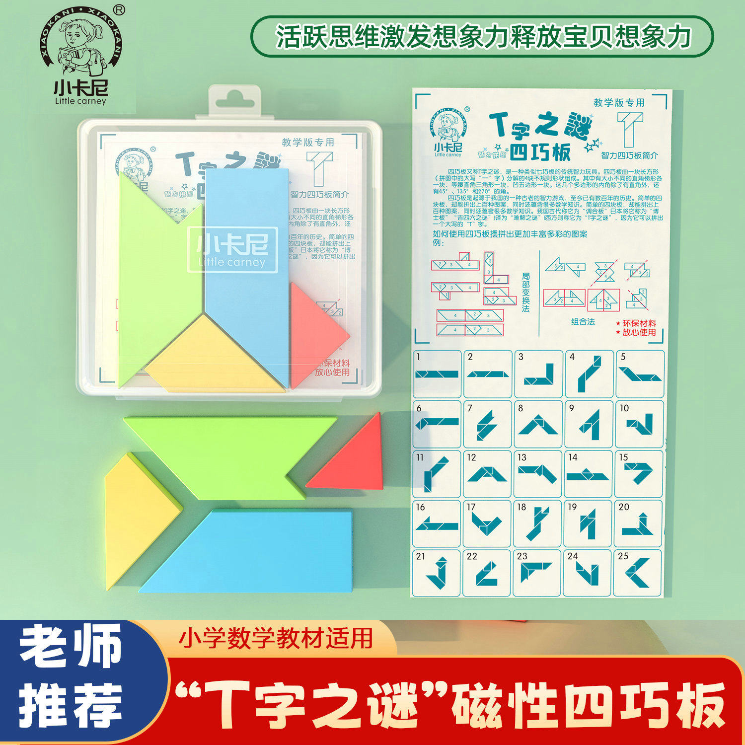 磁性四巧板T字迷之谜儿童拼装益智力拼板拼图小学生幼儿早教玩具