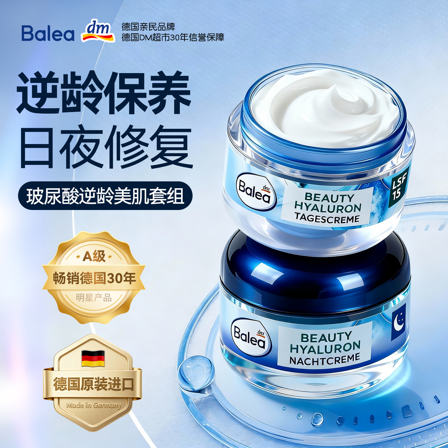 德国balea芭乐雅玻尿酸深层补水保湿修护提拉 日霜晚霜套组面霜