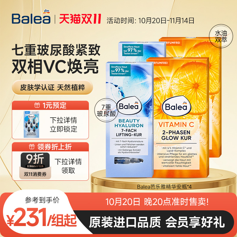 【4盒28天】Balea芭乐雅玻尿酸安瓶精华双萃精华液提亮收缩毛孔女