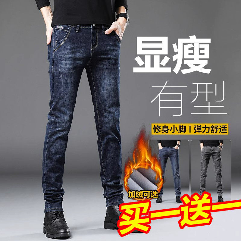 Yishion以纯官方时尚正品牛仔裤男修身男裤2025年秋冬加绒男士小
