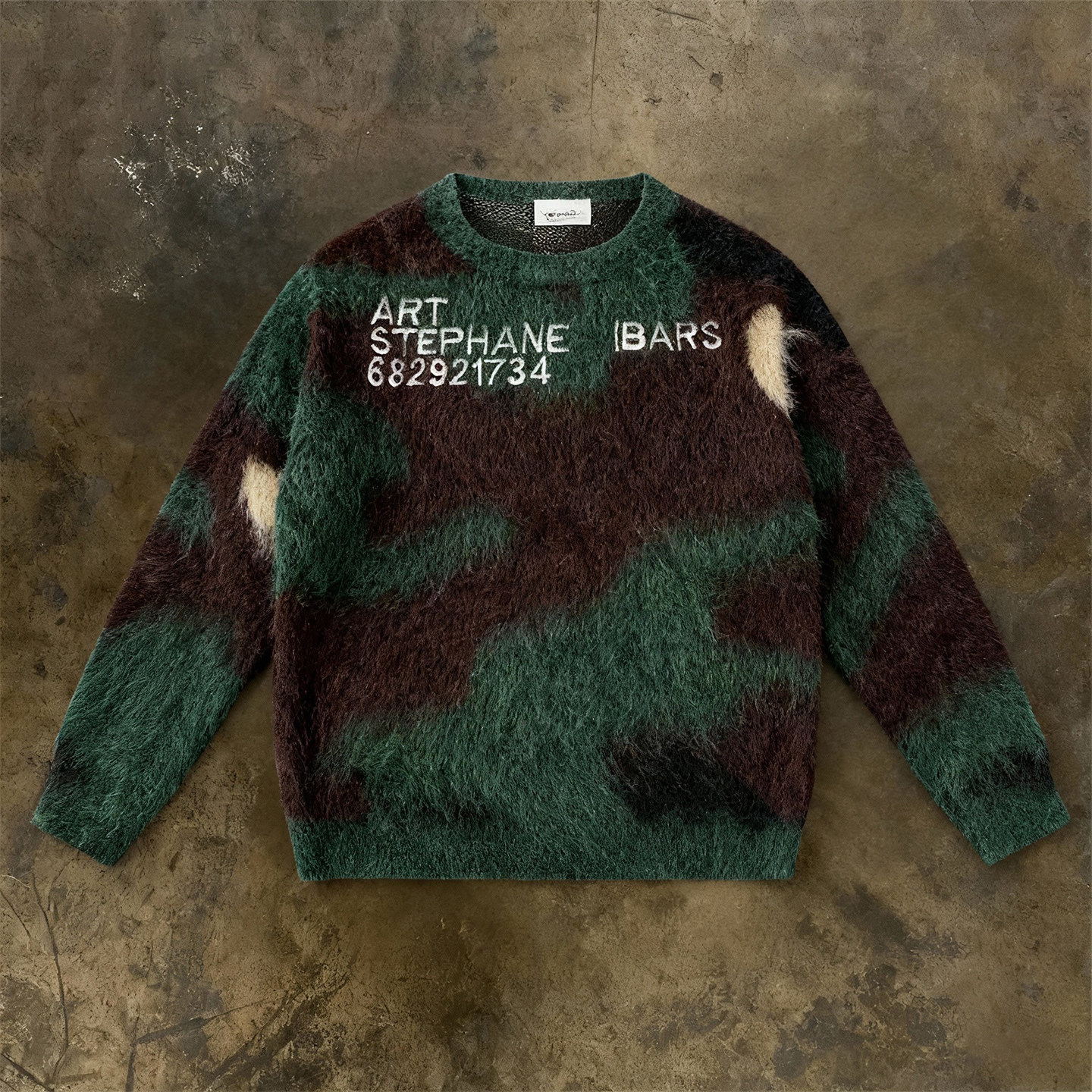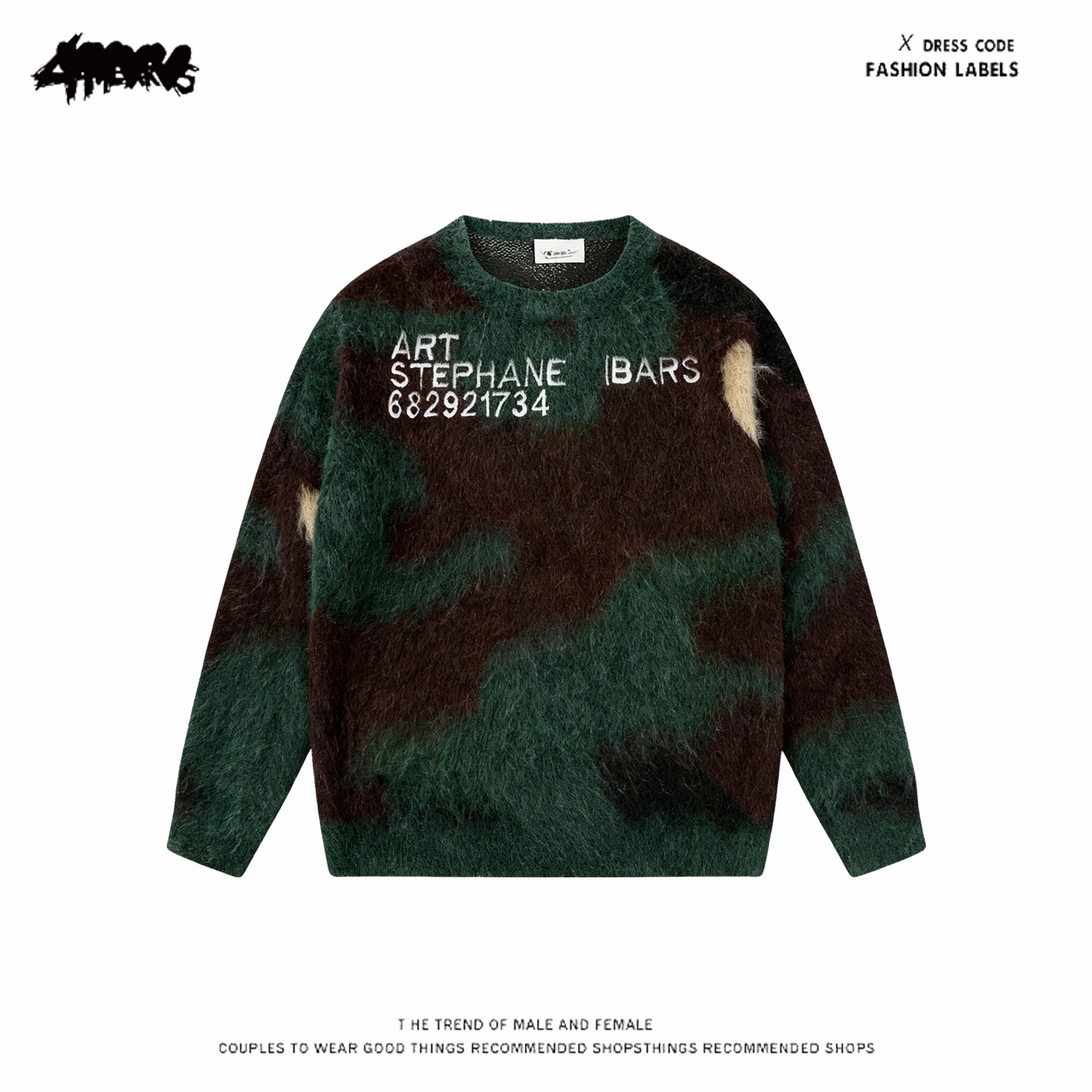 y2k hoodie美式复古迷彩圆领毛衣男女套头针织衫情侣百搭潮流上衣