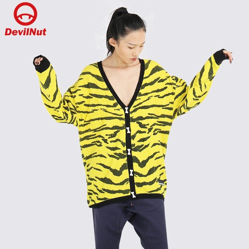 DEVIL NUT潮牌 恶魔 虎纹迷彩 情侣 女式 毛衣开衫外套 BIB AFV