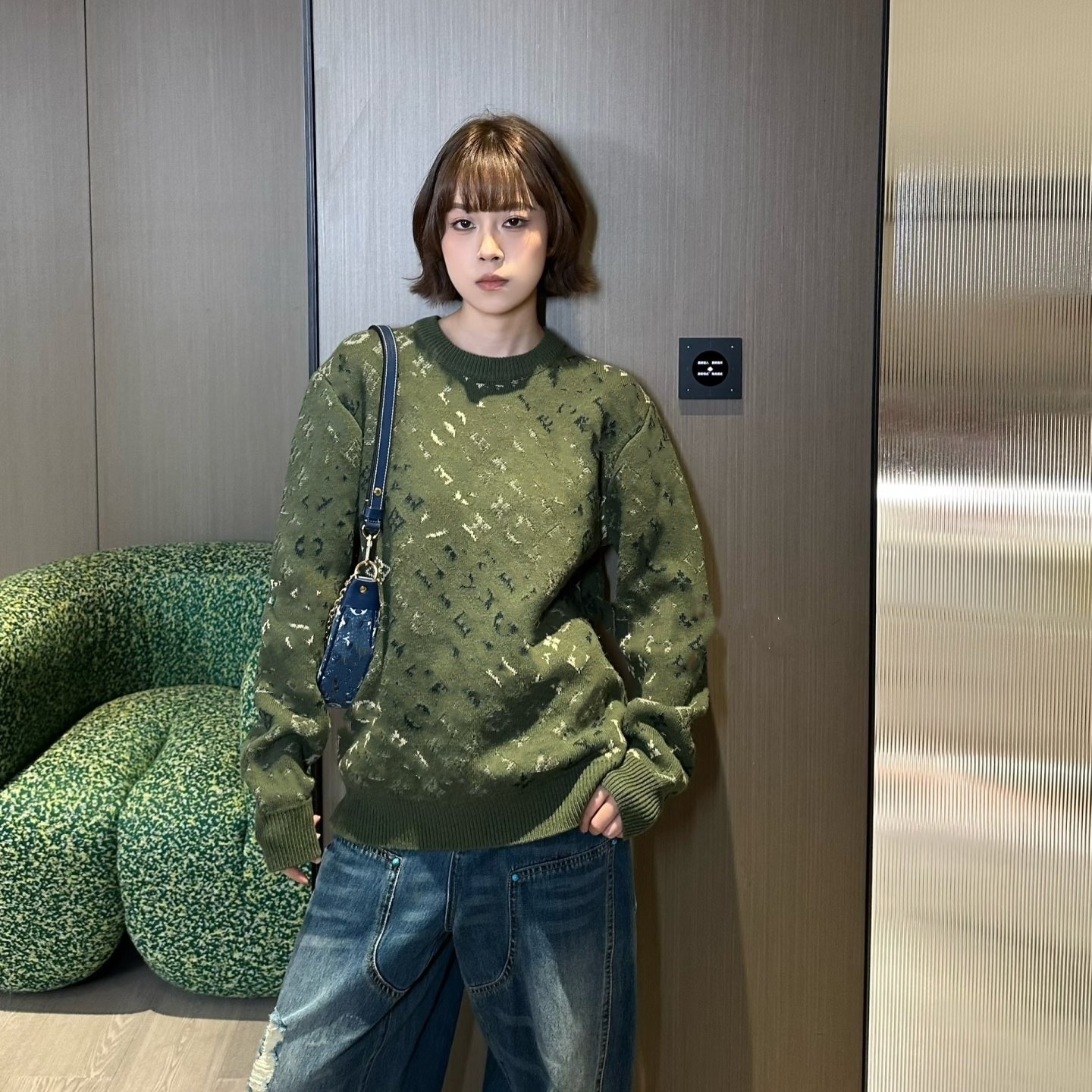 2024秋冬新款韩版东大门迷彩毛衣女宽松套头羊毛保暖针织减龄百搭