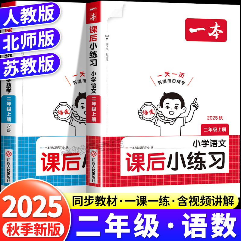 一本课后小练习二年级语文数学同步训练小学2年级上册同步练习册人教版北师版苏教版小学课本一课一练同步练习作业同步课本教材