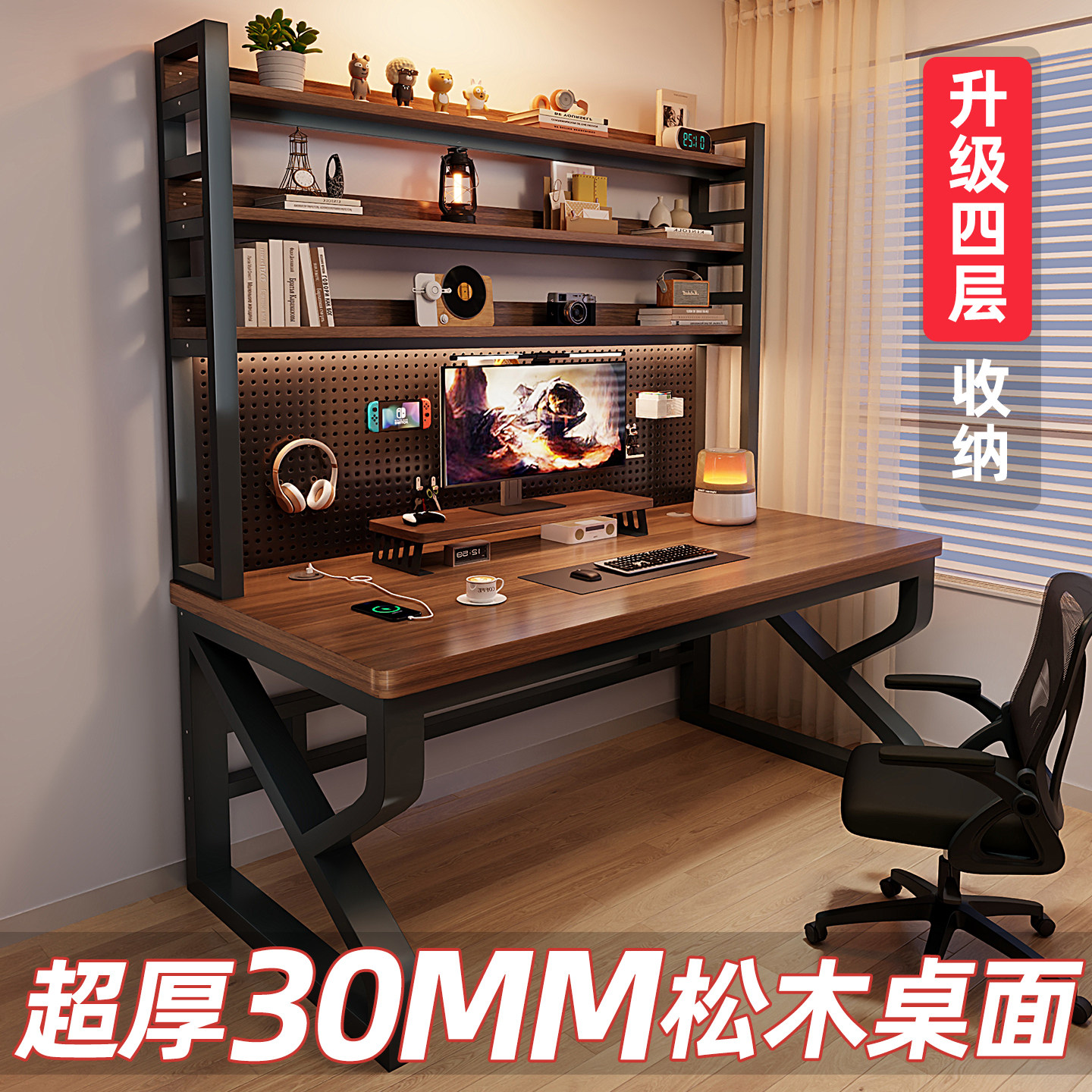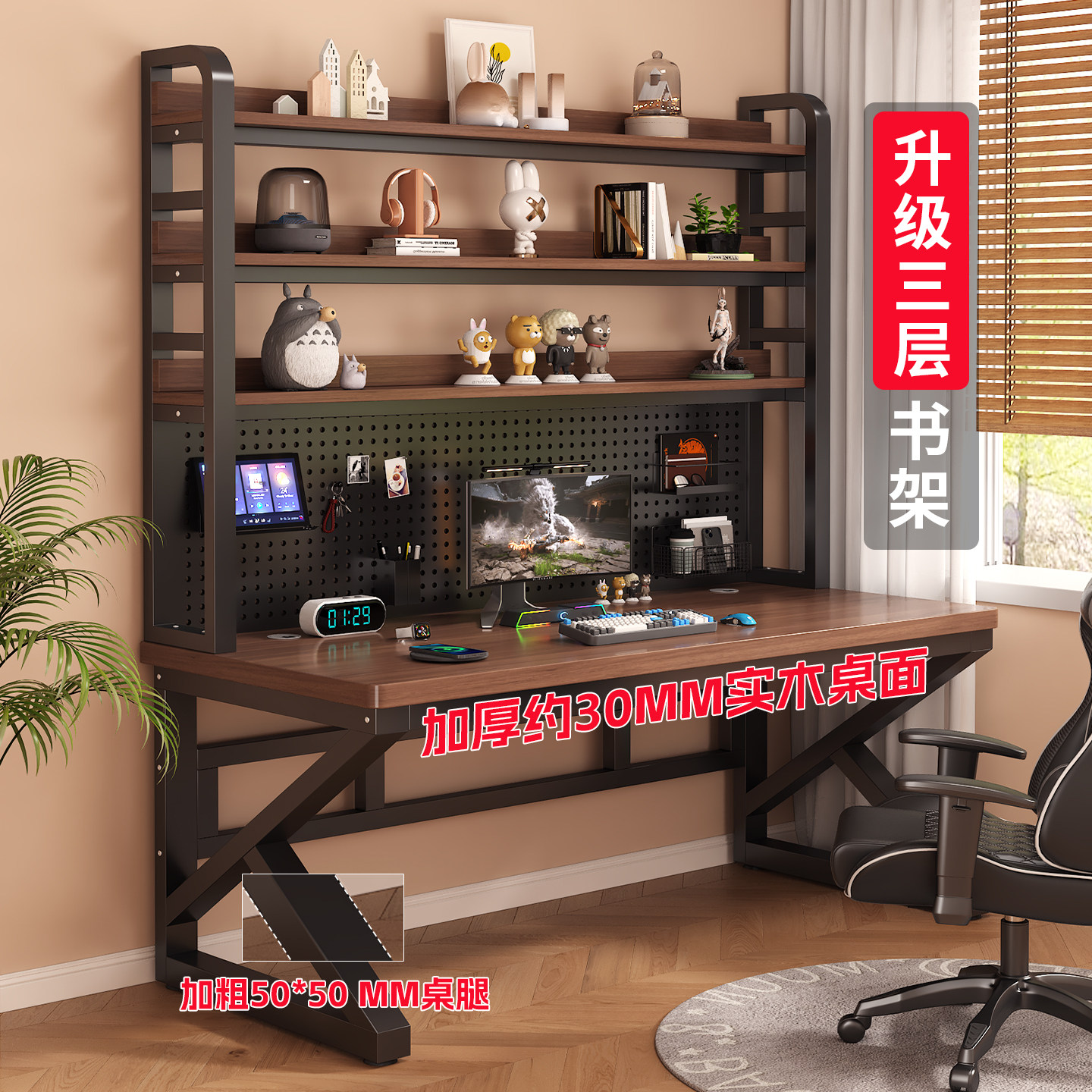 实木电脑桌台式办公桌电竞桌书架带洞洞板长条桌家用学生写字书桌