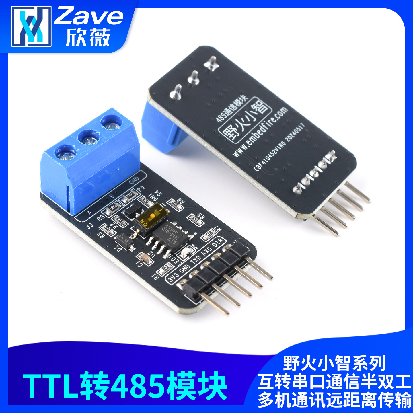 野火小智TTL转RS485模块互转换串口通信半双工多机通讯远距离传输