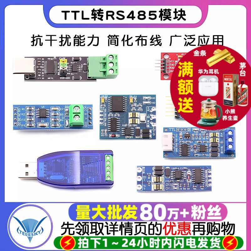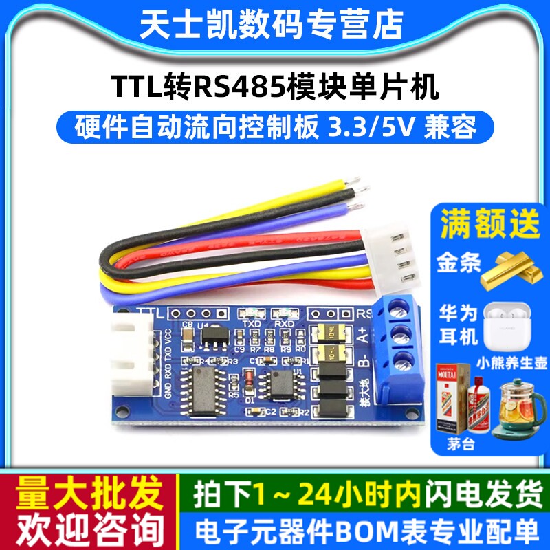 TTL转RS485模块 电平互转通讯自动流向控制自动双向485转串口UART