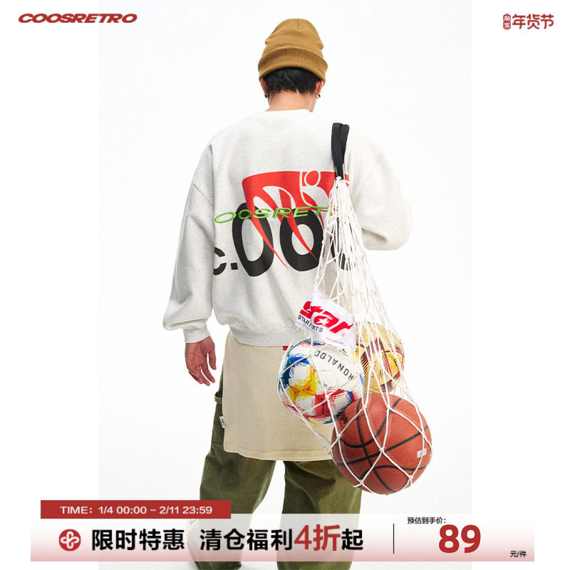CoosRetro日系简约圆领百搭男骑行立体印花刺绣logo潮流宽松卫衣