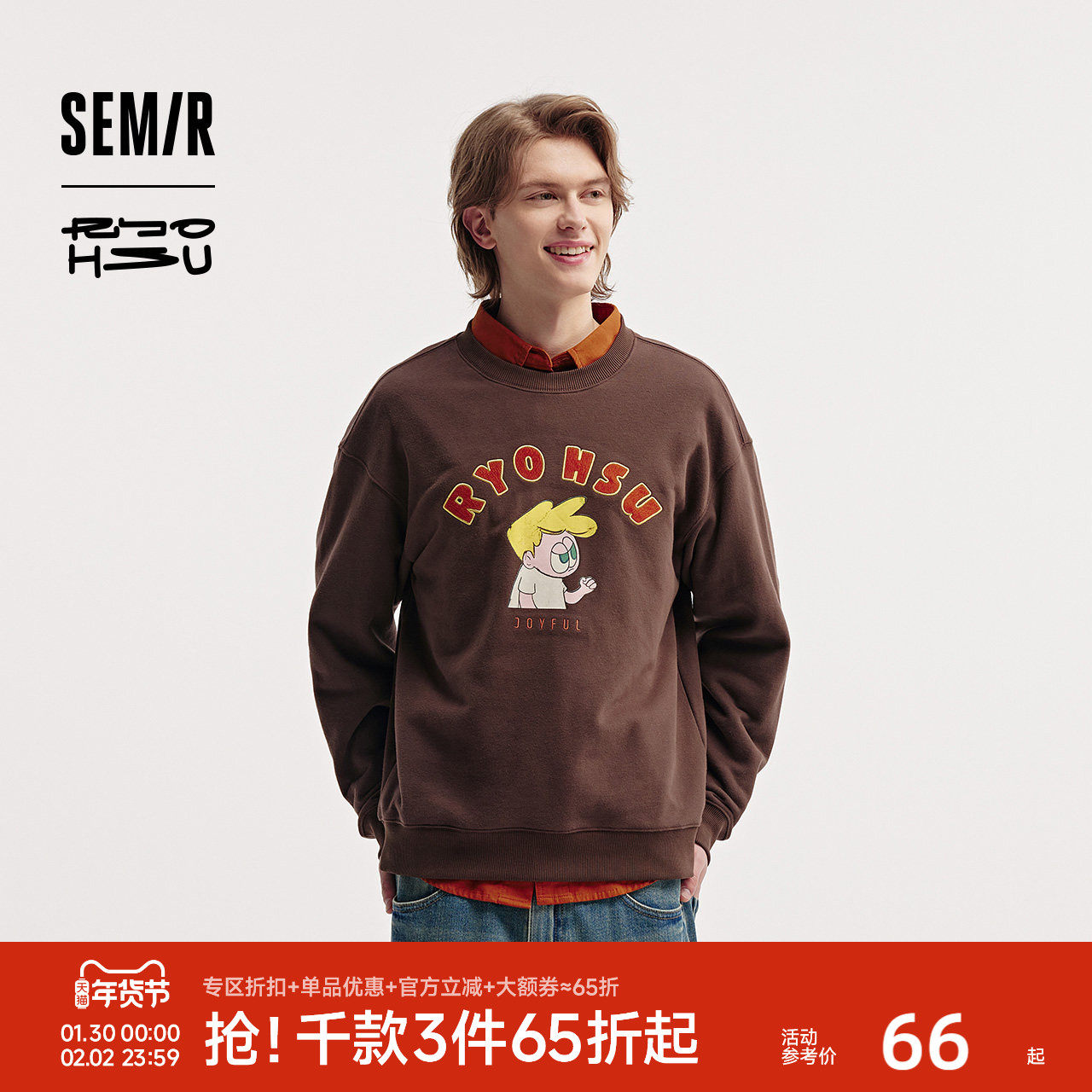 森马×RYO艺术家系列卫衣男时髦潮流绣花情侣装冬季上衣宽松休闲