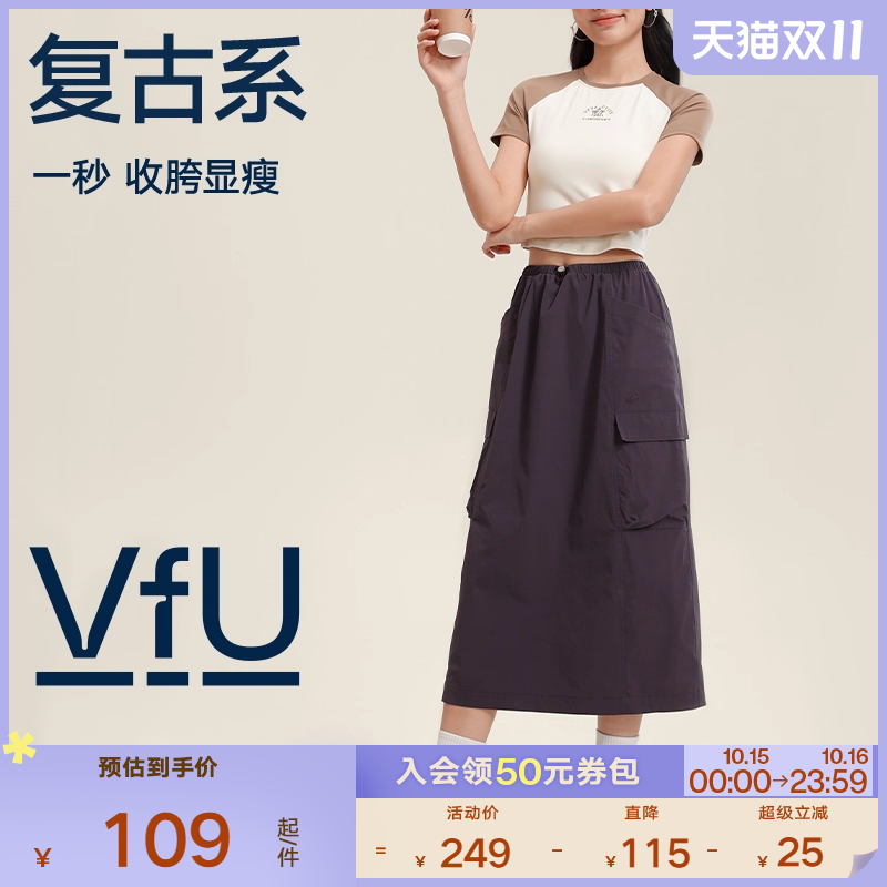 VfU遮胯显瘦半身裙女休闲小个子防晒a字裙高腰中长裙春夏新款裙子