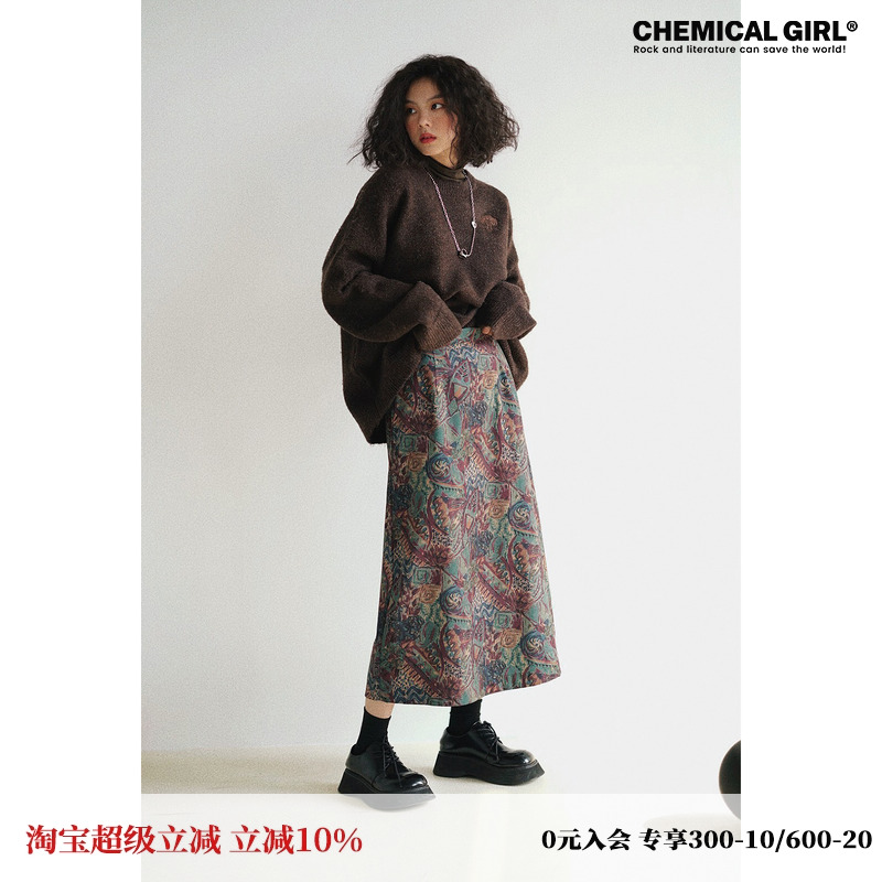 化学少女「中古民谣」复古半身裙女高腰显瘦中长春夏休闲a字裙子