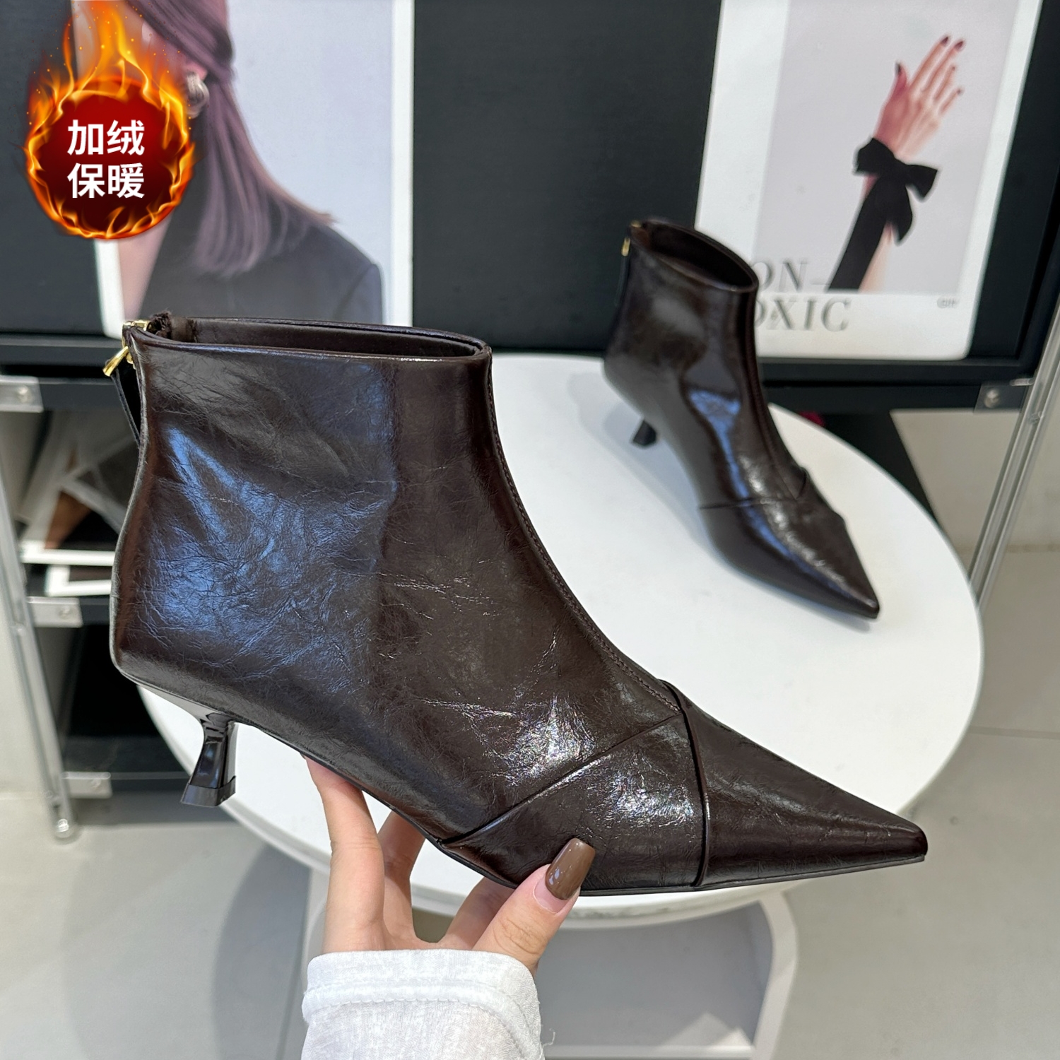 85791【8/6cm】法式尖头时装靴女后拉链细跟短靴冬季气质裸靴单靴