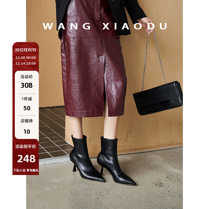 大东加绒高跟靴短靴女2025新款冬季细跟高跟鞋尖头配裙子女靴袜靴