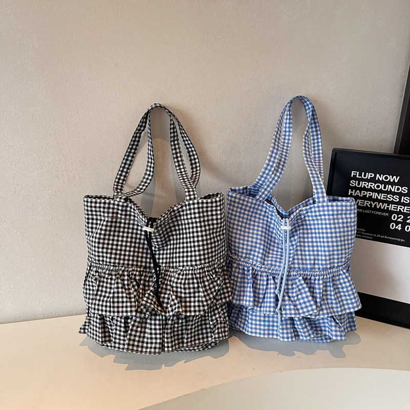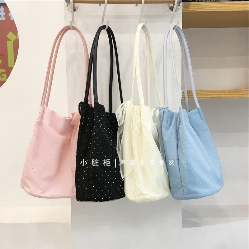 小脏柜 自制春夏韩版清新甜美网纱波点包包百搭女单肩腋下托特包
