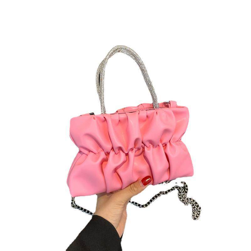 洋气褶皱手提包2023早秋新款单肩斜挎包链条韩版女包潮小清新
