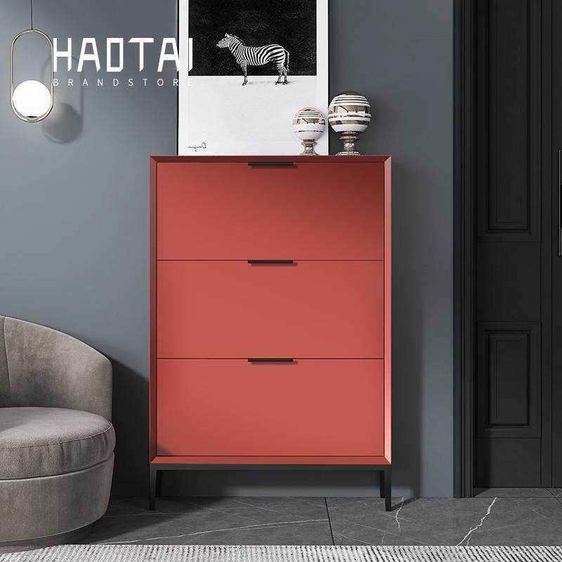 意式极简烤漆超薄鞋柜翻斗式实木家用门口小户型省空间极窄玄关柜