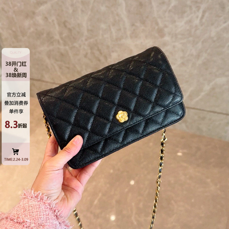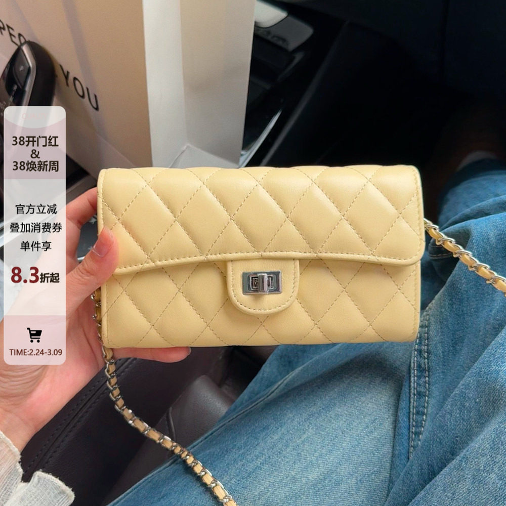 小香风零钱包女小鸡黄手机包包2026新款菱格链条包真皮单肩斜挎包