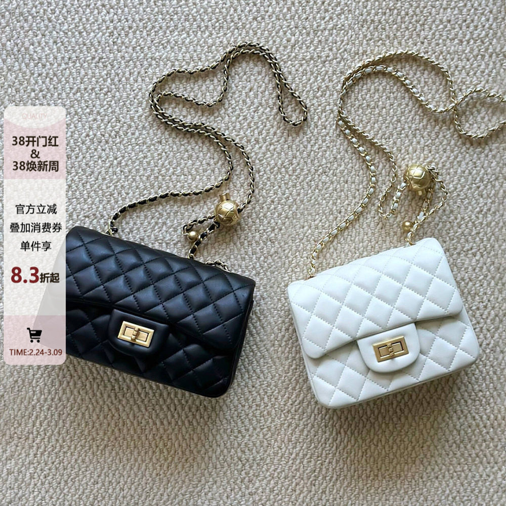 思思家小香风迷你小包包女服装配饰斜挎包金属菱格珍珠链条挂脖包