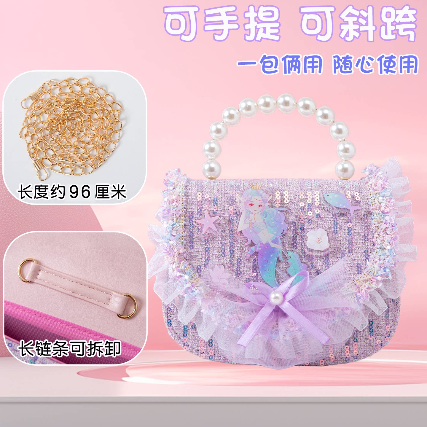 美人鱼女童包包儿童斜挎包小女孩小香风手提包小朋友公主生日礼物