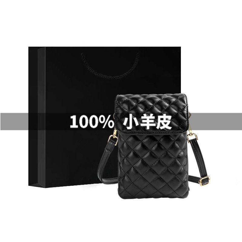 真皮小香风软皮菱格手机包2025新款潮女斜挎单肩小包包钥匙零钱包