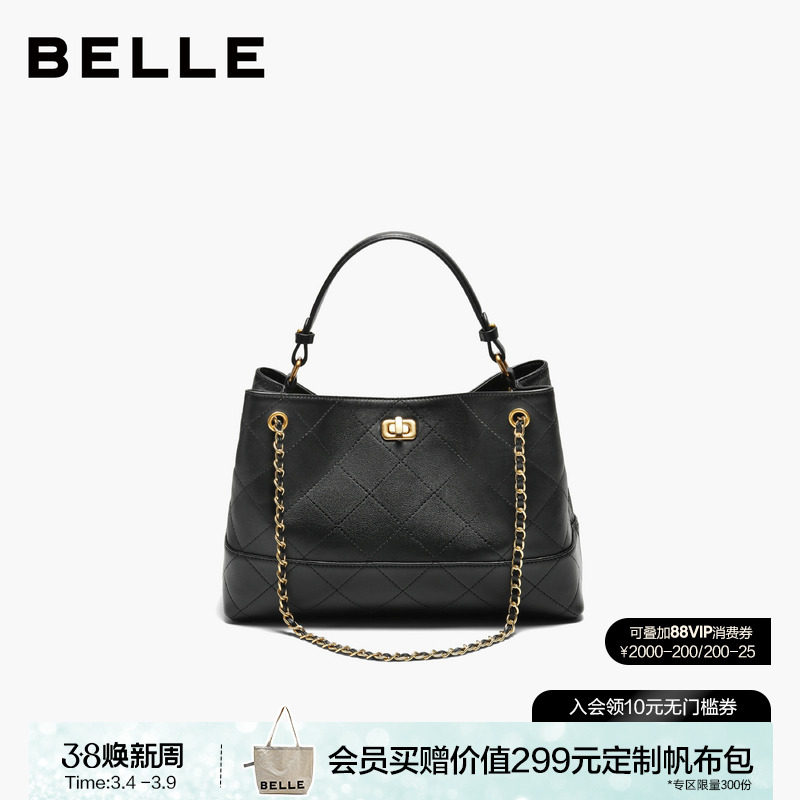 百丽包包女新款撞色小香风手提包百搭时尚斜挎包小托特包F3055DX5