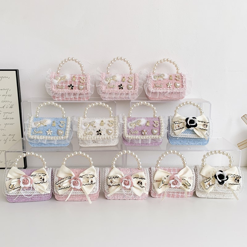 儿童小挎包女孩小香风蝴蝶结手提斜挎包宝宝时尚可爱公主链条包包