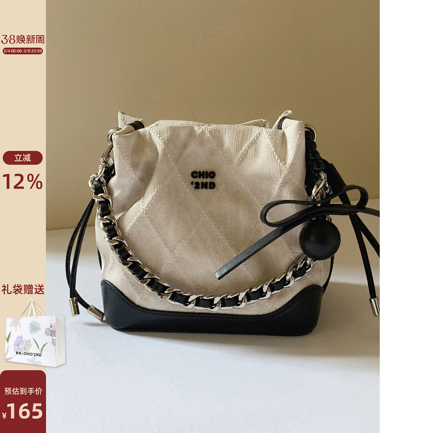 南风Chio2nd 灰调岛屿水桶包小香风高级感精致小包包女单肩斜挎包