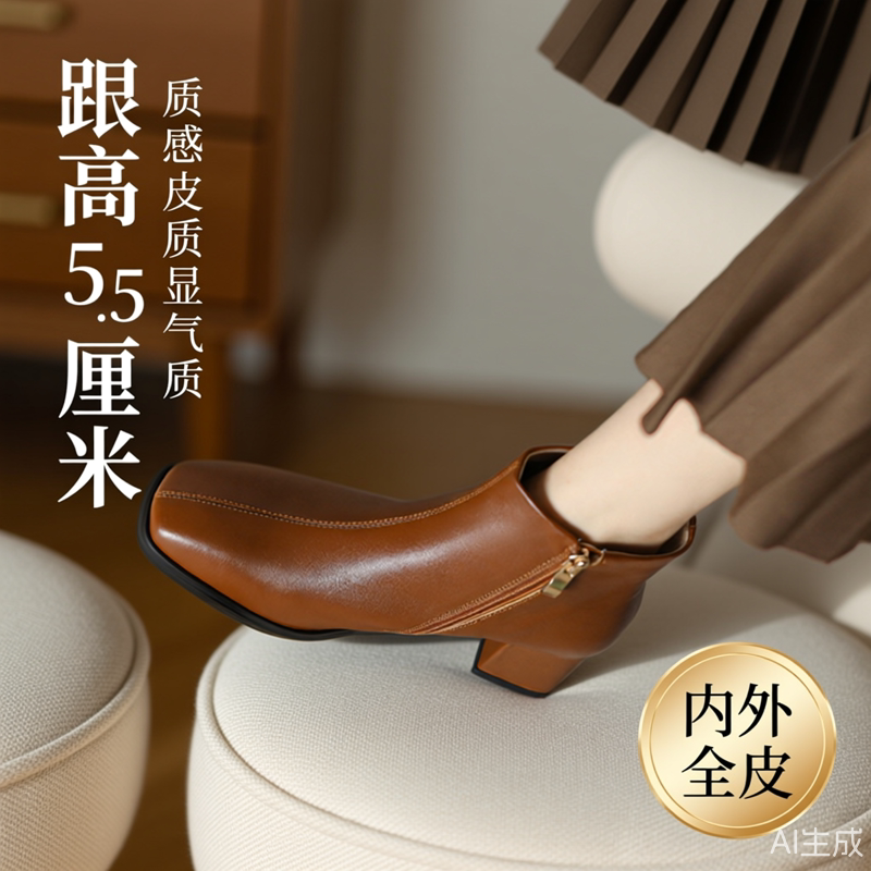 - 钱夫人CHINSTUDIO定制 百搭必入 雪梨的简约率性做旧小短靴
