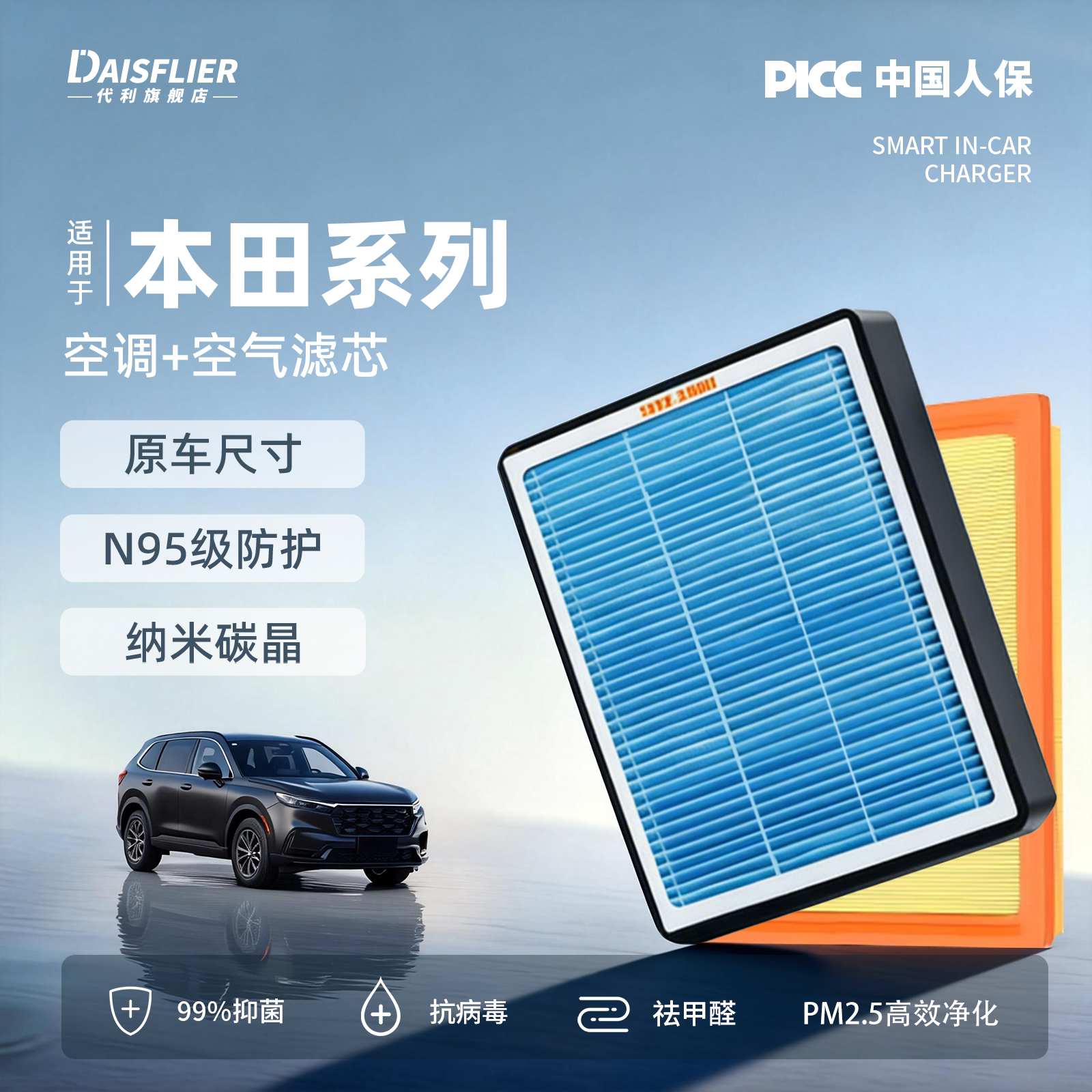 本田雅阁思域皓影飞度CRV锋范XRV缤智凌派油性空气滤芯空调滤芯