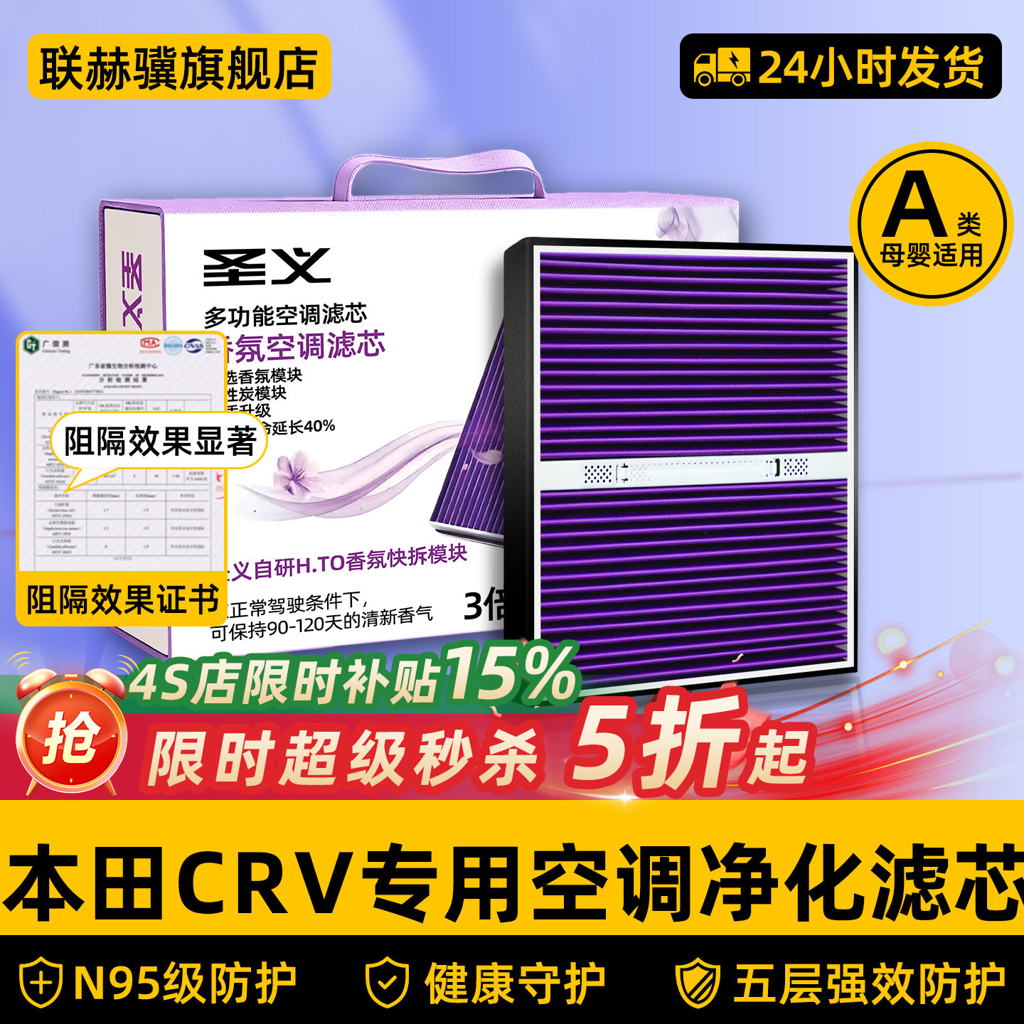 香薰缤智空调滤芯适配本田雅阁CRV思域飞度锋范XRV杰德凌派空气格