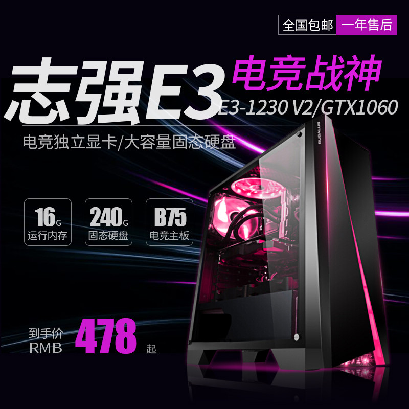 E3游戏电脑主机商务办公电机游戏大内存高速固态独立显卡电脑主机