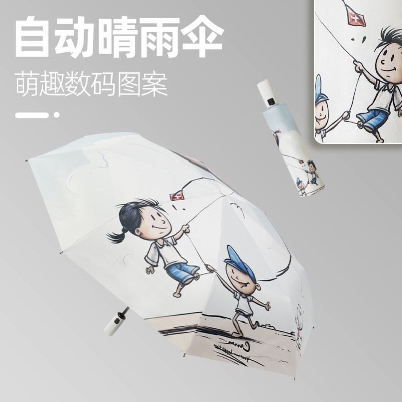 Cikatu西卡图奋斗KT全自动黑胶遮阳伞学生上学专用防紫外线太阳伞