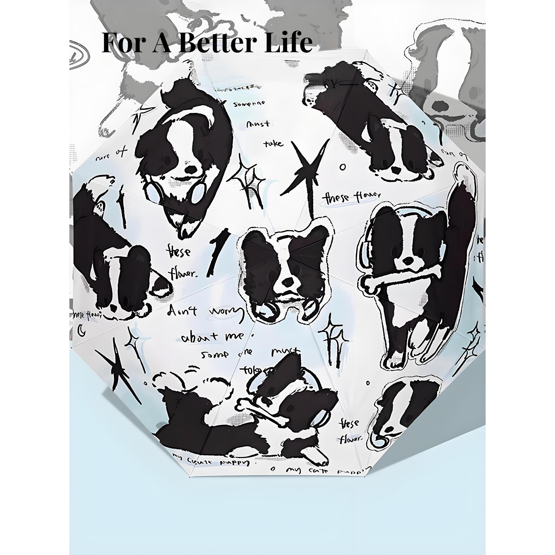 可爱小狗雨伞全自动黑胶遮阳伞晴雨两用防晒便携紫外线学生太阳伞