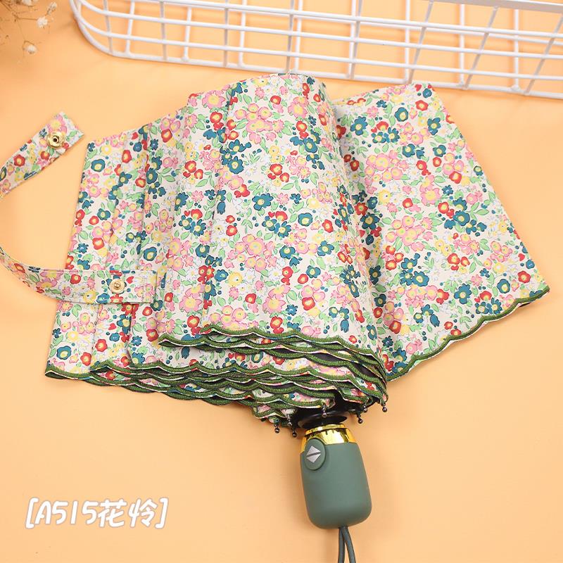全自动黑胶遮阳伞女晴雨两用防晒防紫外线折叠雨伞复古碎花太阳伞