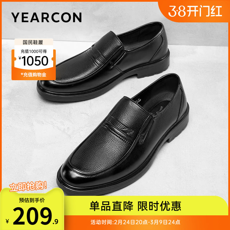 意尔康男鞋真皮商务休闲皮鞋男士一脚蹬软底男款中老年爸爸鞋父亲