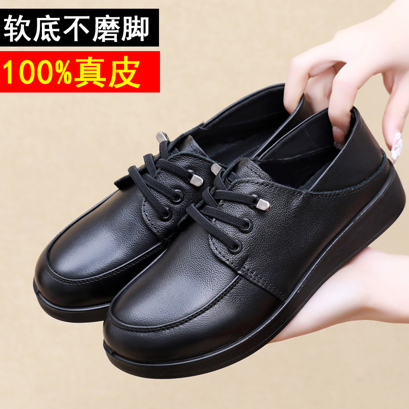 休闲女鞋春秋中老年妈妈鞋真皮老人皮鞋平底软底护士单鞋女士秋冬