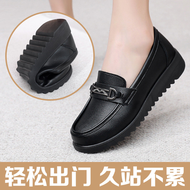 春秋女士单鞋女中老年妈妈鞋防滑奶奶鞋软底工作舒适平底老人皮鞋