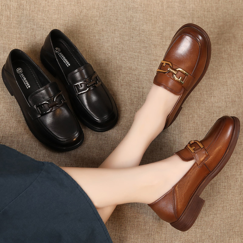 女鞋2025新款中年妈妈鞋软底舒适春秋平底单鞋中老年防滑老人皮鞋
