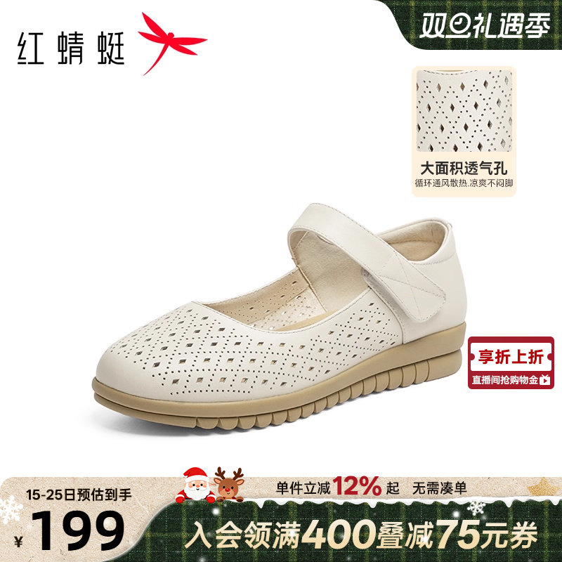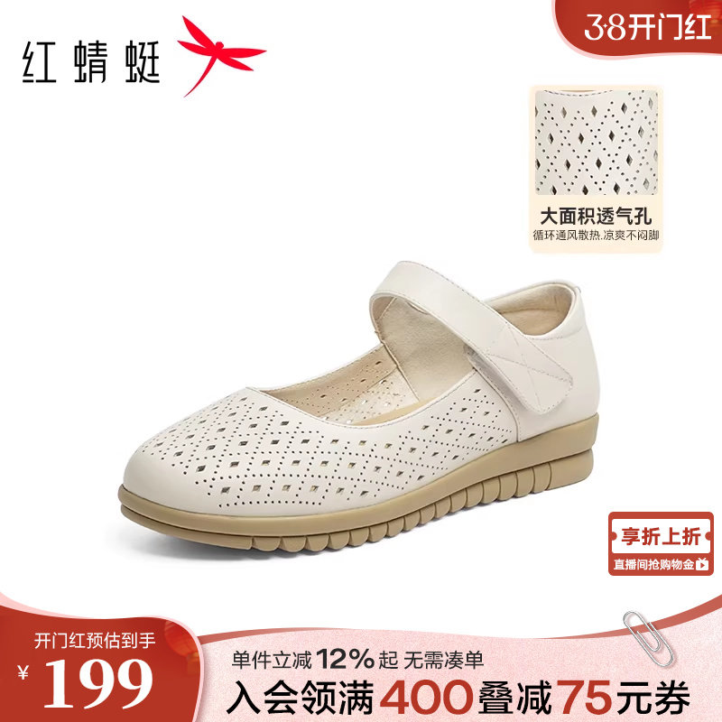红蜻蜓妈妈鞋夏季女鞋中老年洋气鞋子真皮舒适镂空单鞋老人皮鞋女