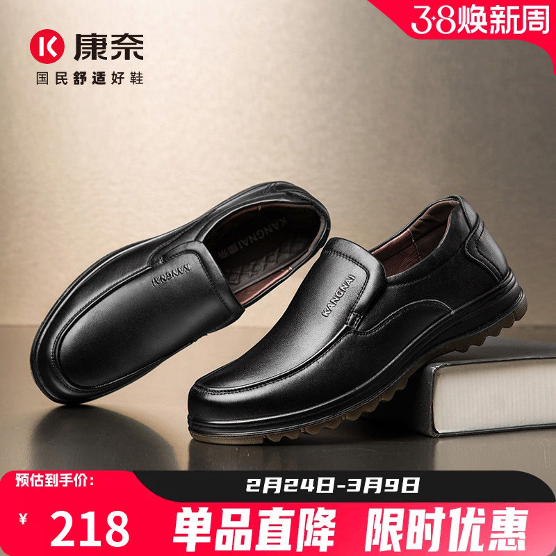 康奈男鞋真皮防滑中老年爸爸鞋软底舒适商务老人皮鞋男全黑公务鞋