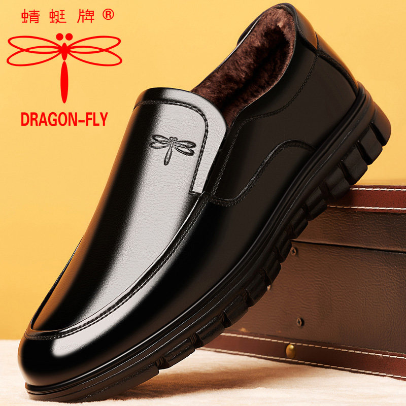 冬季加绒保暖棉鞋男真皮中年人商务休闲老人皮鞋防滑中老年爸爸鞋