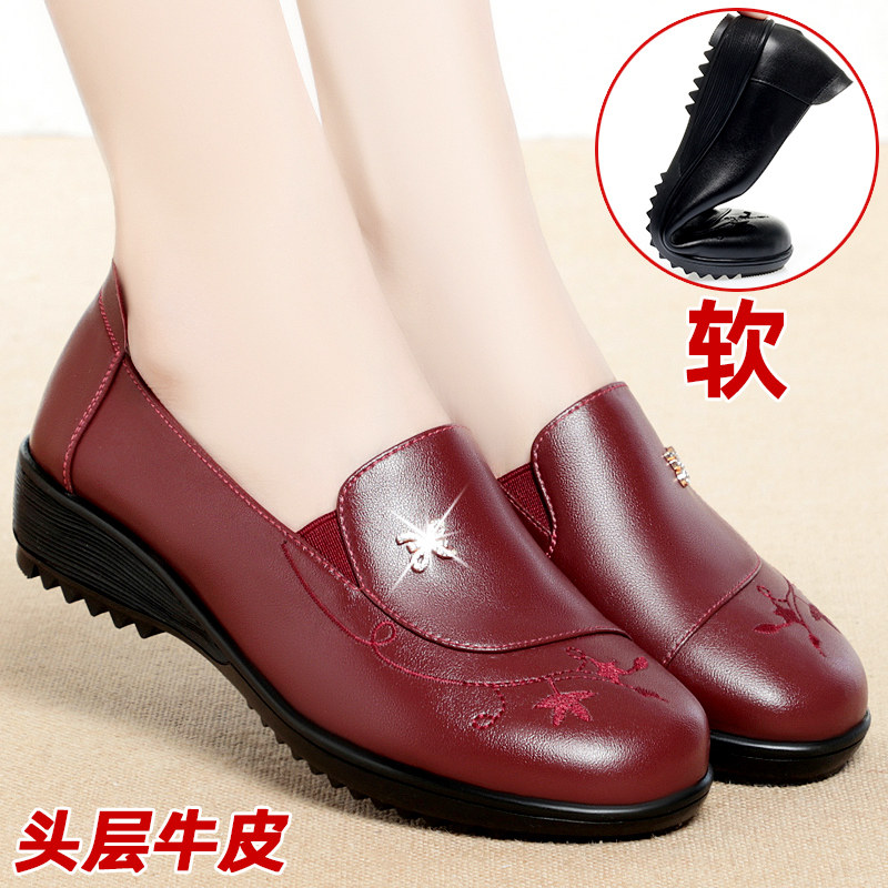 真皮春秋软底舒适妈妈女士鞋中老年女鞋牛皮老人皮鞋防滑奶奶单鞋