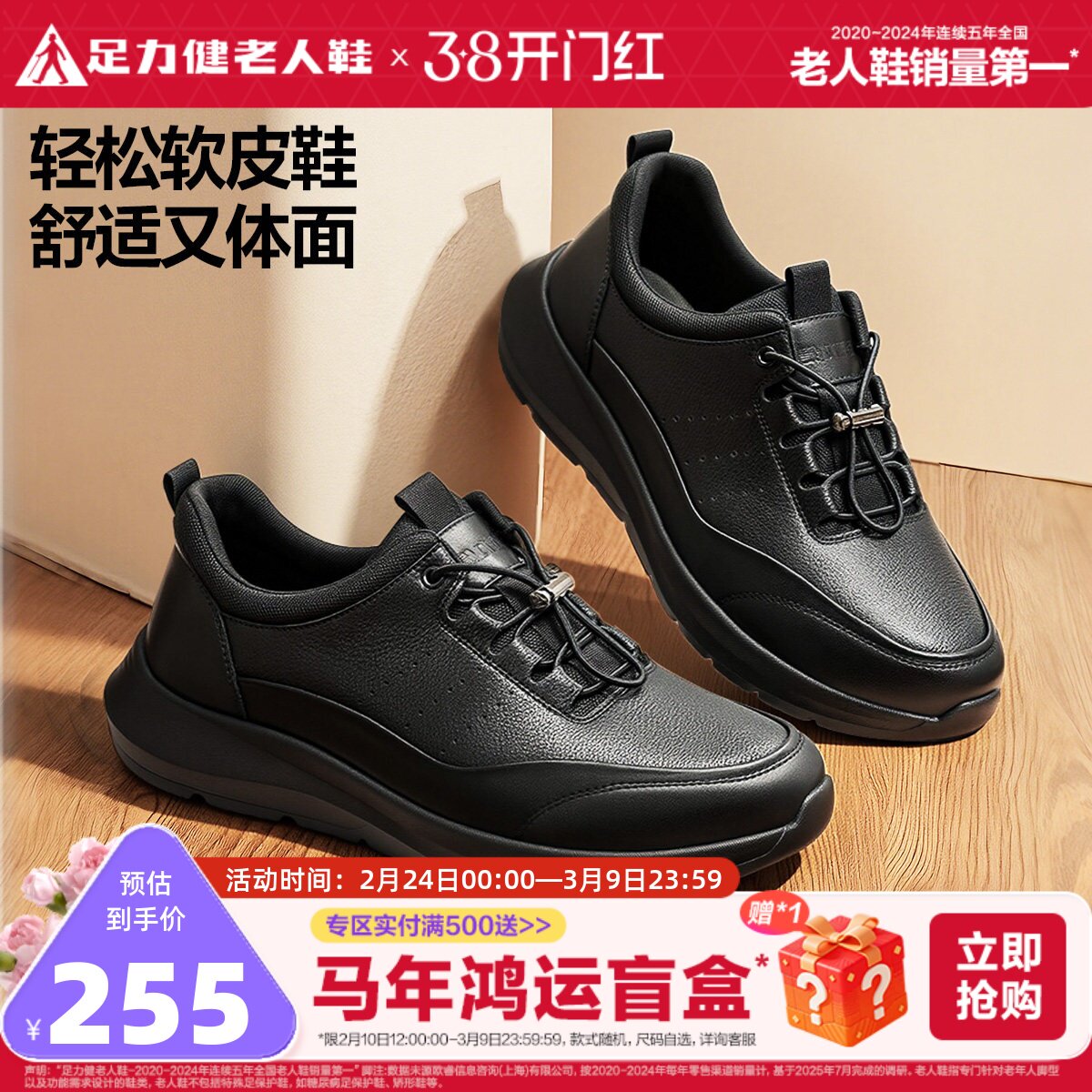 足力健老人鞋官方旗舰店正品休闲皮鞋男春季皮面中老年爸爸运动鞋