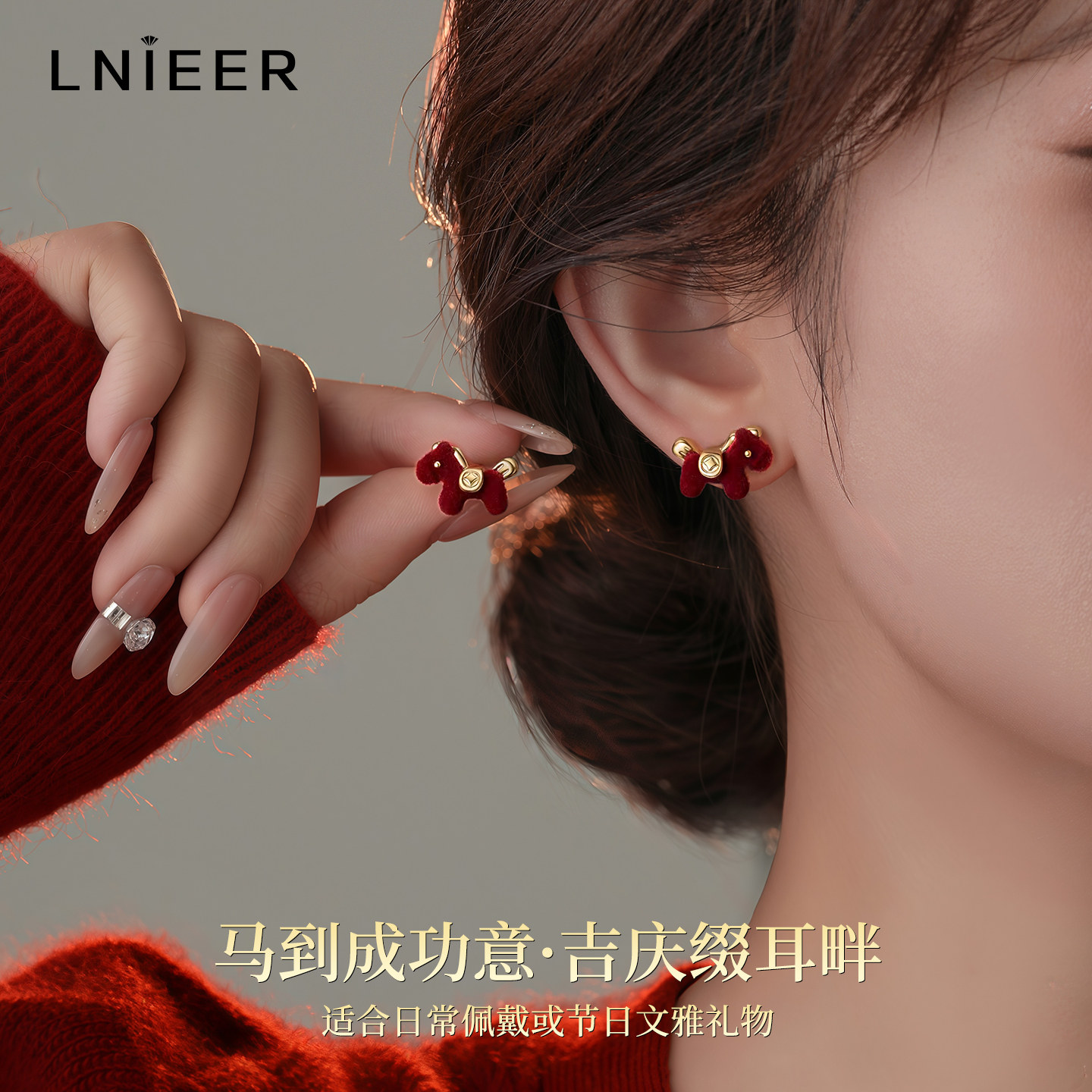 999纯银针红色小马本命年耳钉女高级感轻奢气质耳环2026新年耳饰