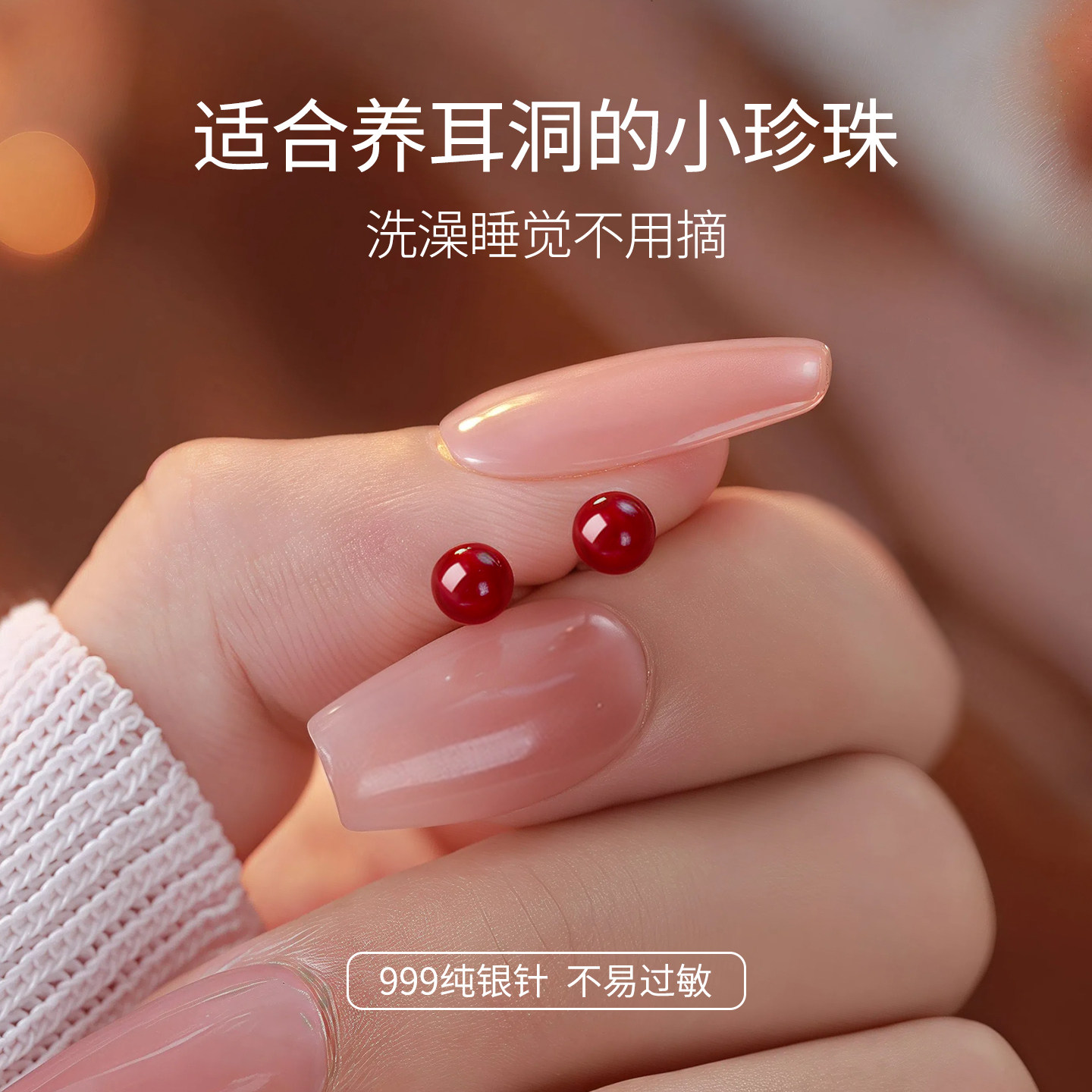 s999纯银珍珠耳钉女迷你安可拉红色睡觉不用摘轻奢气质养耳洞小