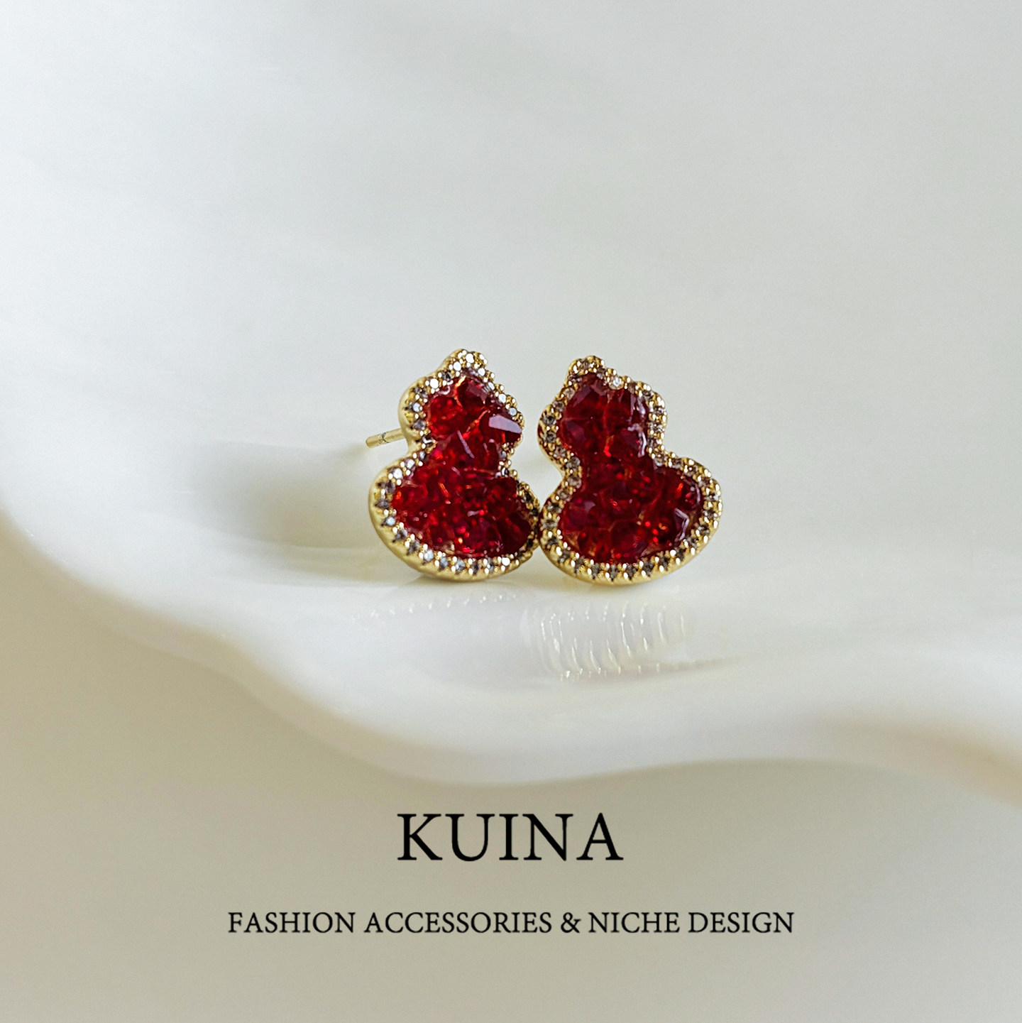 红色水晶葫芦耳钉女轻奢高级感玄学旺财纯银针耳环新款新年耳饰品